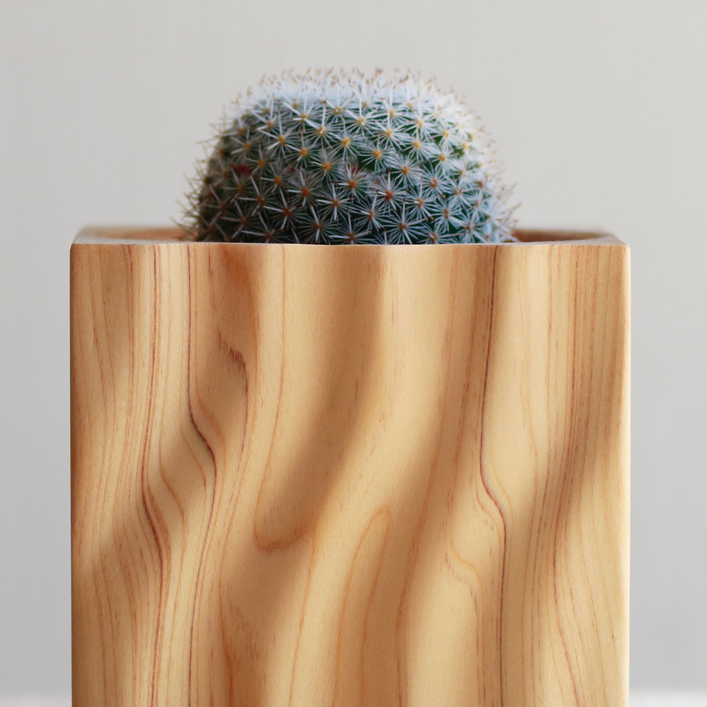 木粉フィギュア専用の鉢 日本の代表的な樹種のヒノキを使用。 【木鉢のサイズ(mm)】 ⬜︎外寸 : 幅58×奥行58x高さ58 ⬜︎内寸 : 直径45×深さ40 ※全て手作りなので、工業製品のような完全な物ではないことをご理解下さい。 【下記お読みください。】 ※植物育成用鉢ではありません ※変色、焼け、欠け、割れがおこります。 ※木目や節などの木の表情は1点1点違います。