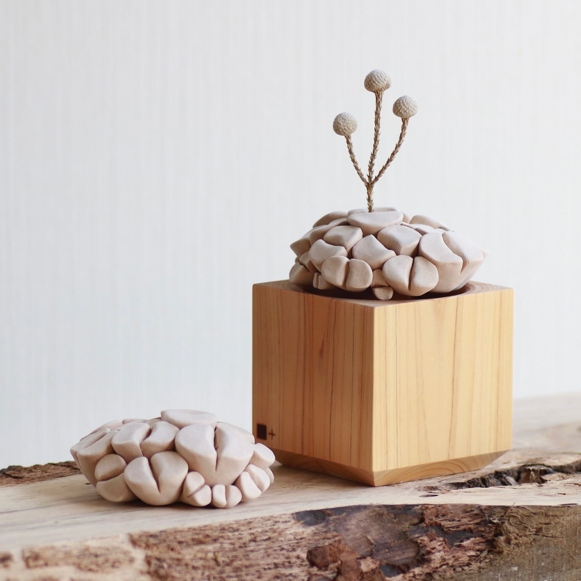 木粉から作られた多肉植物のフィギュア。