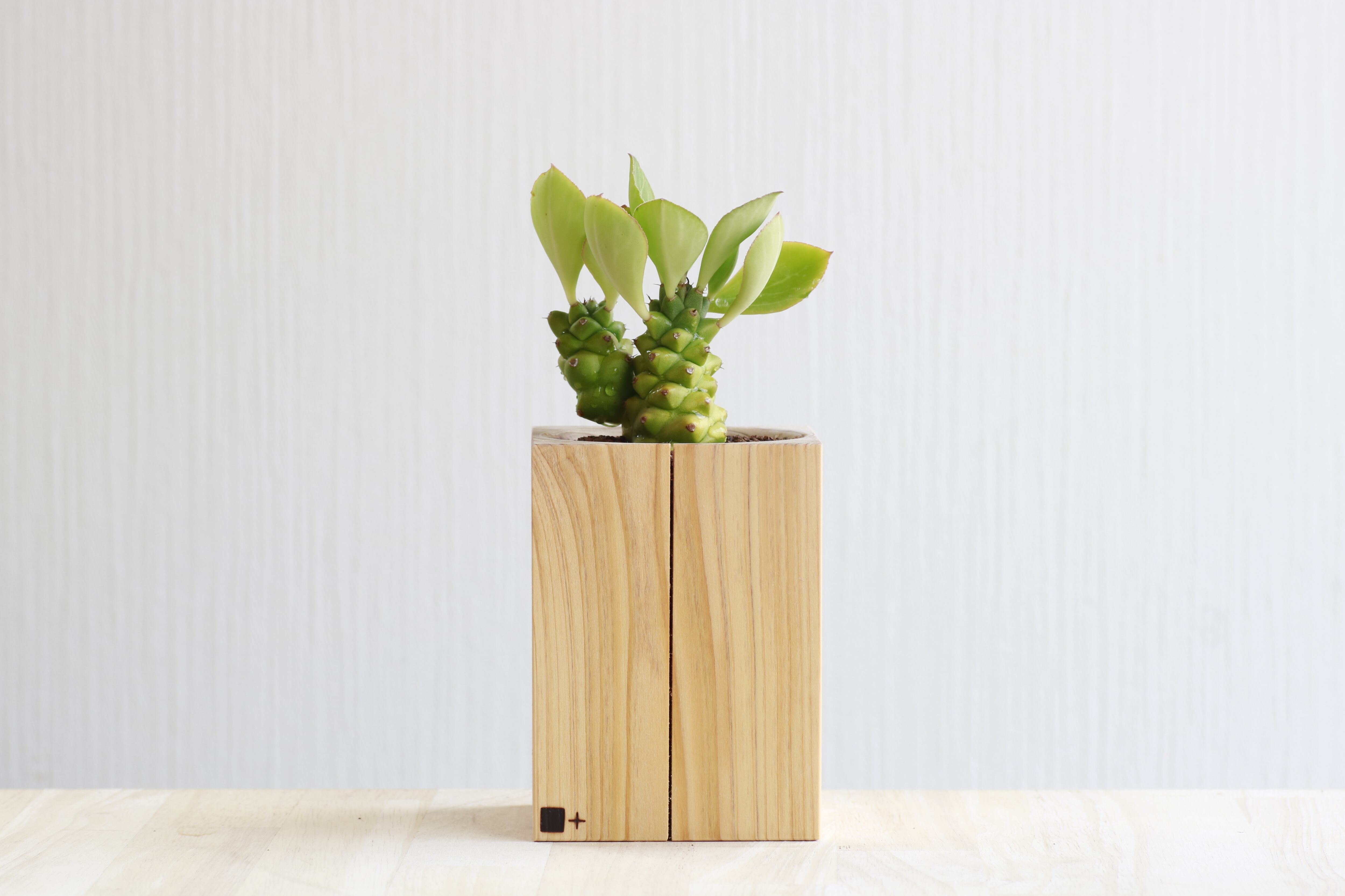 Caceloの鉢には日本の代表的な樹種のヒノキを使用。